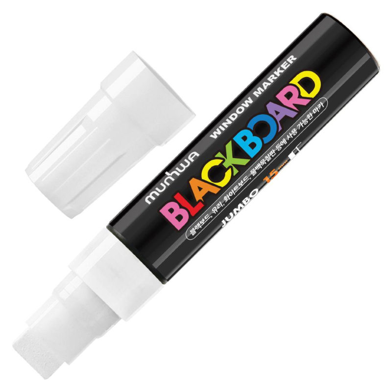 Маркер меловой MunHwa Black Board Jumbo - жидкий мел на водной основе. Используется для письма на белой и черной доске, для декорирования зеркал и стекол, оформления окон, для надписей на металле и коже, идеальный инструмент для детского творчества. Маркеры, нанесенные на гладкую поверхность, легко удаляются влажной тканью. Благодаря высококачественным чернилам, мел поступает дозированно, ложится на поверхность равномерным и однородным слоем, полностью закрашивая обрабатываемую поверхность. Меловой маркер - не крошится, не осыпается при нанесении и не пачкает руки. Клапанный механизм пишущего узла исключает растекание и разбрызгивание мела, преждевременное пересыхание маркера. Толщина письма - 15 мм. Вдвое увеличенный запас чернил. Яркий неоновый белый цвет чернил. Форма наконечника - прямоугольная. Меловой маркер MunHwa Black Board Jumbo - это твой помощник для воплощения всех креативных решений в жизнь. Инструкция по применению: 1) Встряхнуть маркер с закрытым колпачком. 2) Открыть колпачок. Удерживая маркер в вертикальном положении, несколько раз надавить стержнем на поверхность до тех пор, пока краска не поступит на пишущих узел. 3) Выполнить надпись или рисунок. Дать составу высохнуть в течение 40-60 секунд. 4) Плотно закрыть колпачок.