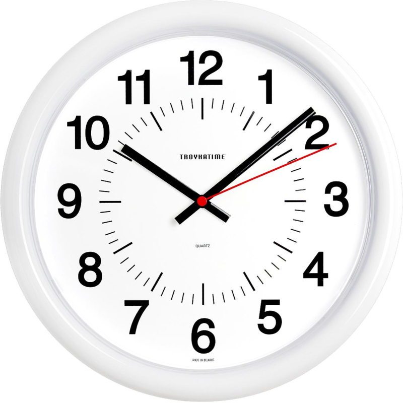 Настенные часы Troykatime - часы настенные станут замечательным решением для декора квартиры, загородного дома либо офиса. Часы оформлены арабскими цифрами, циферблат надежно защищен пластиковым стеклом. Для работы часов требуется одна батарейка типа АА (входит в комплект). Настенные часы оснащены бесшумным кварцевым механизмом. Есть возможность в нанесении логотипа. Материал корпуса - пластик. Цвет корпуса - белый. Вид цифр - арабские, материал защиты циферблата - пластик. Механизм - кварцевый. Габаритные размеры часов (ВхШхГ) - 24,5х24,5х3,6 см. Тип питания - батарейки АА LR6 (пальчиковые) входят в комплект. Обращаем Ваше внимание, что элемент питания идет в комплекте.