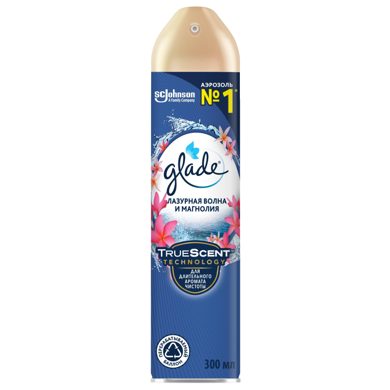 Освежитель воздуха Glade Лазурная волна и Магнолия 300 мл Назначение: Бодрящие морские и цитрусовые ноты, дополненные восстанавливающим силы цветочным ароматом, подарят Вам заряд энергии. Glade TrueScent Technology гарантирует безопасность и экспертную формулу своих аэрозолей для создания ощущения чистоты. Способ применения: Хорошо встряхнуть перед использованием. Направить колпачок к центру комнаты и распылить. ОСТОРОЖНО! Воспламеняющийся аэрозоль. Баллон под давлением. При нагревании возможен взрыв. При попадании в глаза вызывает раздражение. Меры предосторожности: Использовать только по назначению согласно инструкции. Не разбирать и не давать детям! Беречь от источников воспламенения, нагревания, искр, открытого огня. Не курить. Не распылять вблизи открытого огня или других источников воспламенения. Не нарушать целостности упаковки и не сжигать, даже после использования. Использовать только в хорошо проветриваемых помещениях. Не допускать попадания в глаза. Людям с повышенной чувствительностью к ароматам применять средство с осторожностью. Использование освежителя воздуха не заменяет надлежащую гигиену. ПРИ ПОПАДАНИИ В ГЛАЗА: Осторожно промыть под водой в течение нескольких минут. Снять контактные линзы, если Вы ими пользуетесь и если это легко сделать. Продолжить промывание глаз. Если раздражение глаз не проходит, обратиться за медицинской помощью. Условия хранения: Хранить в сухом недоступном недоступном для детей и домашних животных месте при температуре от -5 до +35 градусов отдельно от пищевых продуктов. Беречь от солнечных лучей, избегать нагревания выше 50 градусов. Состав: Вода;