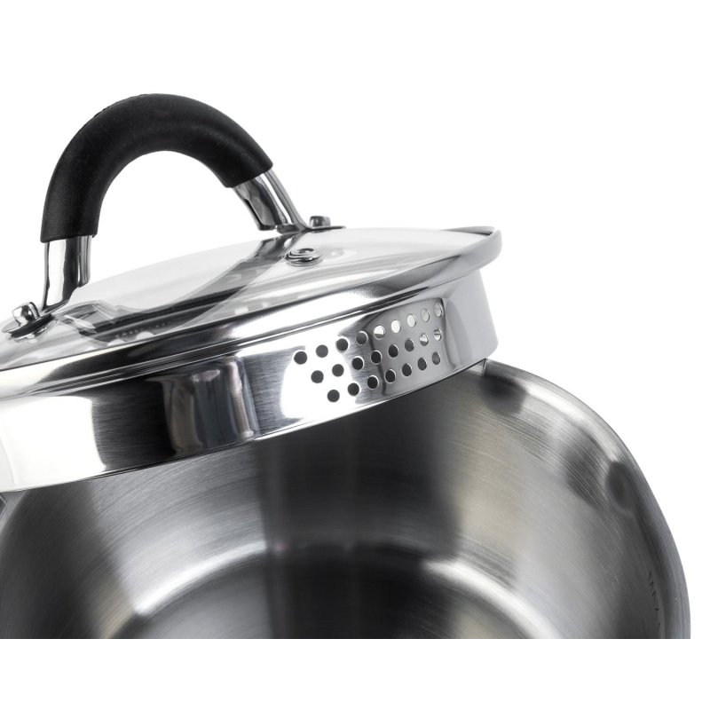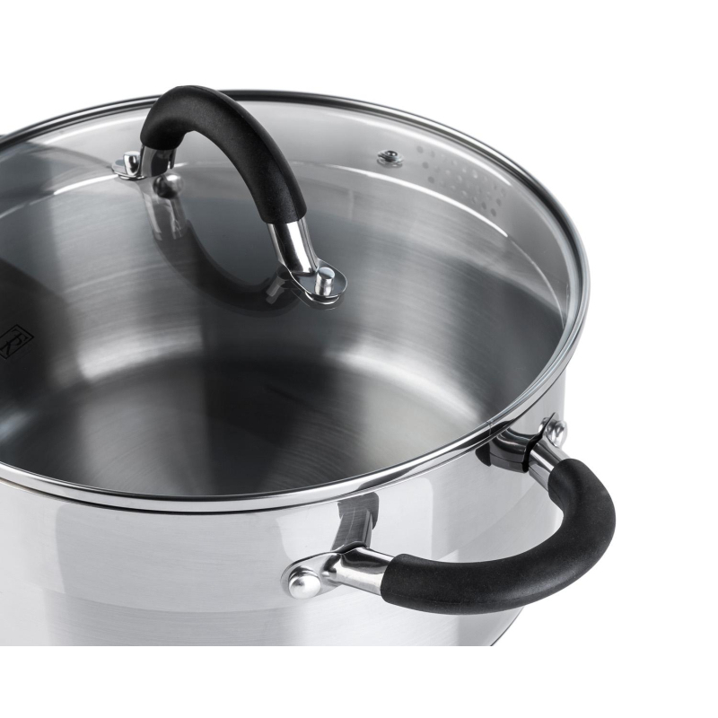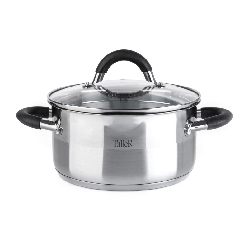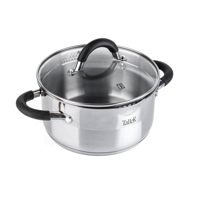 Кастрюля TalleR Телфорд 3.1 л нержавеющая сталь с крышкой. Кастрюля выполнена из высококачественной нержавеющей стали марки 18/10. Капсулированное дно. Полировка внешняя - комбинированная, что создает уникальный внешний вид кастрюли, внутренняя - матовая. Есть отметки литража. Крышка из жаропрочного стекла с отверстием для выхода пара и широким металлическим ободком с отверстиями для слива жидкости. Форма края кастрюли предусматривает желобок для удобного слива жидкости. Ручки из нержавеющей стали с силиконовыми вставками. Подходит для всех типов плит (включая индукционную). Пригодна для мойки в посудомоечной машине. Не рекомендуется использовать в духовом шкафу.