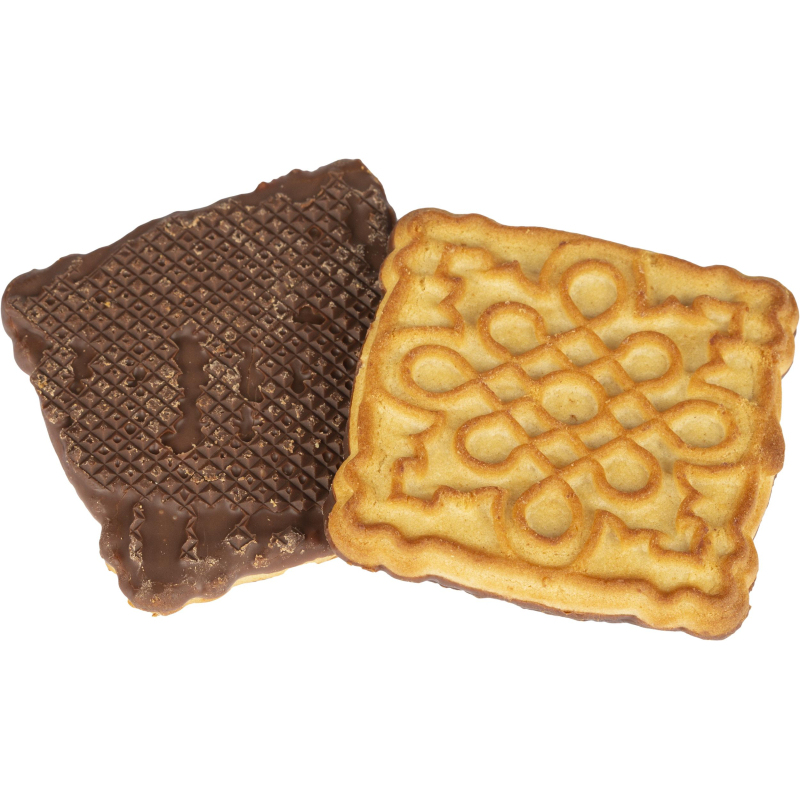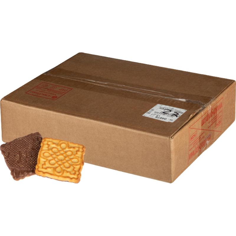 Классическое сахарное печенье со вкусом топленого молока. Рассыпчатое печенье и глазированным дном. Не содержит красителей. Состав продукта: мука пшеничная, сахар, жир кондитерский (рафинированные дезодорированные масла в натуральном и модифицированном виде (пальмовое и его фракции, подсолнечное, соевое), эмульгаторы: моно- и диглицериды жирных кислот; лецитин соевый, ароматизатор, краситель бета-каротин, антиокислители: аскорбиновая кислота, альфа-токоферол), заменитель масла какао нетемперируемый лауринового типа (рафинированное дезодорированное гидрогенизированное фракционированное пальмоядровое масло, эмульгаторы: сорбитан тристеарат, соевый лецитин), какао-порошок, сыворотка молочная сухая деминерализованная, разрыхлители: гидрокарбонат натрия, гидрокарбонат аммония; меланж яичный сухой, соль пищевая, ароматизаторы, эмульгаторы: лецитин соевый, Е471; регулятор кислотности кислота молочная. Может содержать диоксид серы. Энергетическая ценность на 100 г: 470 ккал. Пищевая ценность: белки 6.5 г, жиры 22 г, углеводы 62 г. Условия хранения - хранить при температуре (18 5) С и относительной влажности воздуха не более 75%. Срок хранения 6 месяцев. Производитель - ООО "Глобус". Страна производства - Россия.