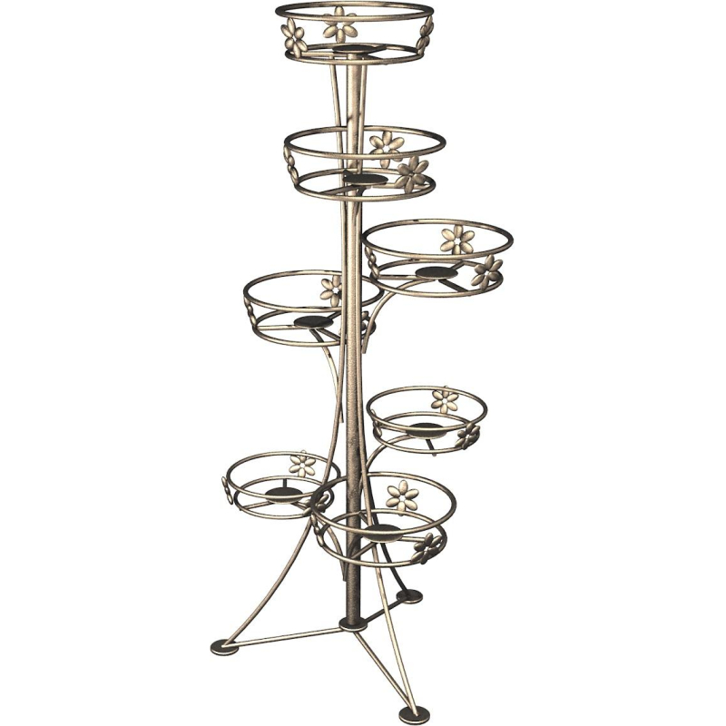 Подставка под цветы металлическая. Устойчивая напольная высокая многоместная металлическая стойка для цветов на ножках. Держатель для кашпо поможет собрать каскад из разных растений, создаст необычную композицию, которая украсит ваш дом. А размещенная на веранде полка для цветов подарит дополнительную улыбку всем гостям, входящим в ваш дом. Порошковое окрашивание стойки-этажерки из металла серии "Бронзовый Антик" обеспечивает прочность и долговечность покрытия, образует поверхность старинных бронзовых предметов и придает изделию декоративный вид. Благодаря хорошей стойкости к атмосферным воздействиям пьедестал для цветов с порошковым окрашиванием возможно использовать внутри помещения либо как уличную цветочницу. Материал стальная труба. Цвет коричневый. Высота цветочницы - 1400 мм. Диаметром 180 мм (1 посадочное место).