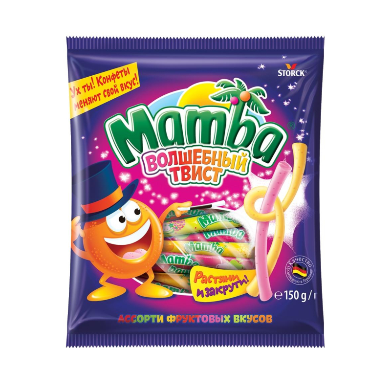 Mamba "Волшебный твист" - это сочные жевательные конфеты с различными вкусами. Эти конфеты чудесным образом меняют свой вкус! Попробуйте удивительные превращения: ананас - апельсин, вишня - яблоко, арбуз - малина, манго - клубника. У конфет необычная форма в виде палочек, с которыми можно играть: согнуть, растянуть или закрутить!Состав: сахар, глюкозный сироп, растительное масло, агент влагоудерживающий сорбитовый сироп (Е 420ii), желатин, регулятор кислотности лимонная кислота (Е 330), ароматизаторы, концентрат черной моркови, концентрат спирулины, краситель куркумин (E 100), концентрированный сок клубники, пюре из черной смородины. Хранить в сухом прохладном месте при температуре от 13 °С до 21 °С и относительной влажности воздуха не более 60%. Вес: 150 г. Страна производства: Германия.