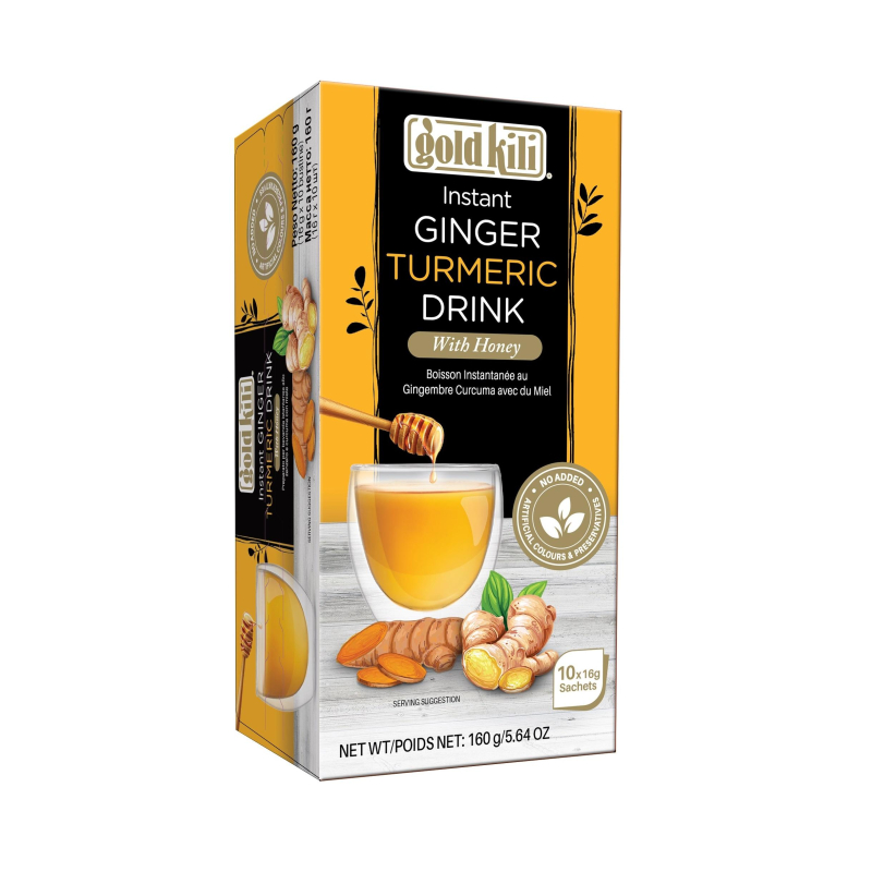 Имбирный напиток с куркумой и медом Gold Kili, быстрорастворимый. Уникальный по составу продукт. Специально разработанное сочетание имбиря, куркумы и меда для достижения оптимального баланса легкой пряности и сладости. Теплый и успокаивающий, каждый глоток заряжает Вас в течение всего дня. Готовый порционный напиток с куркумой. Будучи мощными супер продуктами, используемыми на протяжении тысячелетий, имбирь и куркума улучшают здоровье несколькими способами, успокаивают боль, лечат воспаление, расслабляют ваше тело и повышают ваши уровни энергии! Состав: тростниковый сахар, экстракт имбиря, экстракт куркумы, мед. Не содержит ГМО. Не содержит искусственных красителей и консервантов. Хранить в сухом, прохладном, защищенным от попадания прямых солнечных лучей месте. Страна производства: Сингапур.