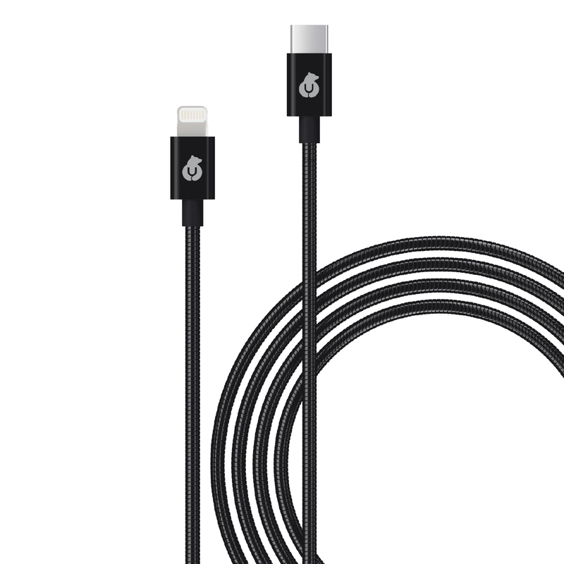 Кабель uBear Force UCB Type-C - Lightning, длина 1.2 м, черный (DC10BL12FM-CL). Металлический зарядный кабель uBear Force UCB Type-C - Lightning, стальная оплетка, длина 1.2 м., цвет: черный. Оплетка из нержавеющей стали - максимум прочности как снаружи, так и внутри. Она надежно защищает кабель от механических воздействий и при этом обладает достаточной эластичностью. Укрепленные алюминиевые коннекторы гарантируют длительную эксплуатацию. Усилен Кевларом - пуленепробиваемый материал, используемый в военной технике. Его волокна прочно вплетены внутрь кабеля, гарантируя ему абсолютную износостойкость. Благодаря данной конструкции кабель может выдержать до 10 000 сгибаний, что в 3 раза больше, чем в обычных кабелях. Кабель имеет сертификат MFI, а значит его надежность, технологичность и высокое качество сертифицированы Apple. Лаконичный дизайн в сочетании с премиальными материалами (алюминиевые коннекторы, стальная оплетка, Кевларовое усиление) будет идеально смотреться с вашими девайсами. Длина кабеля 1.2 м. Это на 20 см. больше, стандартной длины кабеля в 1м.