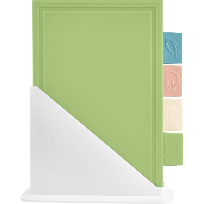 Набор разделочных досок Sugar&Spice Vanilla полипропилен (4 штуки). Набор досок разделочных Sugar&Spice коллекция Vanilla, на подставке, пластиковый. Удобное решение для организации пространства на кухне. Комплект включает в себя 4 разделочных доски, каждая доска имеет свой цвет и специальный ярлычок, что позволяет использовать доску определенного цвета для определенного вида продуктов (мясо, рыбы, овощей и фруктов, и хлебобулочных изделий), это избавит от смешивания запахов пищи и позволит не испортить вкус готового блюда. Благодаря желобу для стекания жидкости, рабочая поверхность останется чистой. Для хранения досок предусмотрена специальная подставка, что позволяет экономить место на кухне. Размер: 248х82х310 мм.