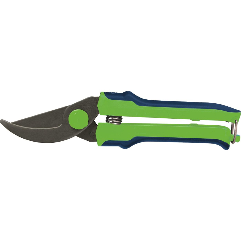 Секатор прямого реза Сибртех Горизонт 60539 длиной 220 мм, с пластиковыми рукоятками, облегчает уход за растительностью на дачном участке. Он используется для срезания живых веток и стеблей толщиной до 12 мм. Лезвия, расположенные в параллельных плоскостях, производят аккуратный гладкий срез, минимизируя наносимый растению ущерб. Регулировочный винт позволяет контролировать плотность примыкания лезвий.Преимущества:- Рабочие части изготовлены из среднеуглеродистой стали, что обеспечивает им износостойкость.- Режущее лезвие прошло термическую закалку, что придает ему устойчивость к истиранию.- На поверхность лезвий нанесено оксидированное покрытие, защищающее их от коррозии.- Рукоятки выполнены из полипропилена, устойчивого к воздействию ультрафиолета, что продлевает срок службы садового секатора.- Фиксирующая скоба удерживает рукоятки в сомкнутом положении, поэтому инструмент безопасен в хранении и транспортировке.Товар относится к ценовому сегменту "суперэконом". Имеет упрощенные характеристики и более простую упаковку. Отвечает основным требованиям потребления.Внешний вид и/или характеристики товара могут быть изменены производителем в соответствии с производственным процессом.