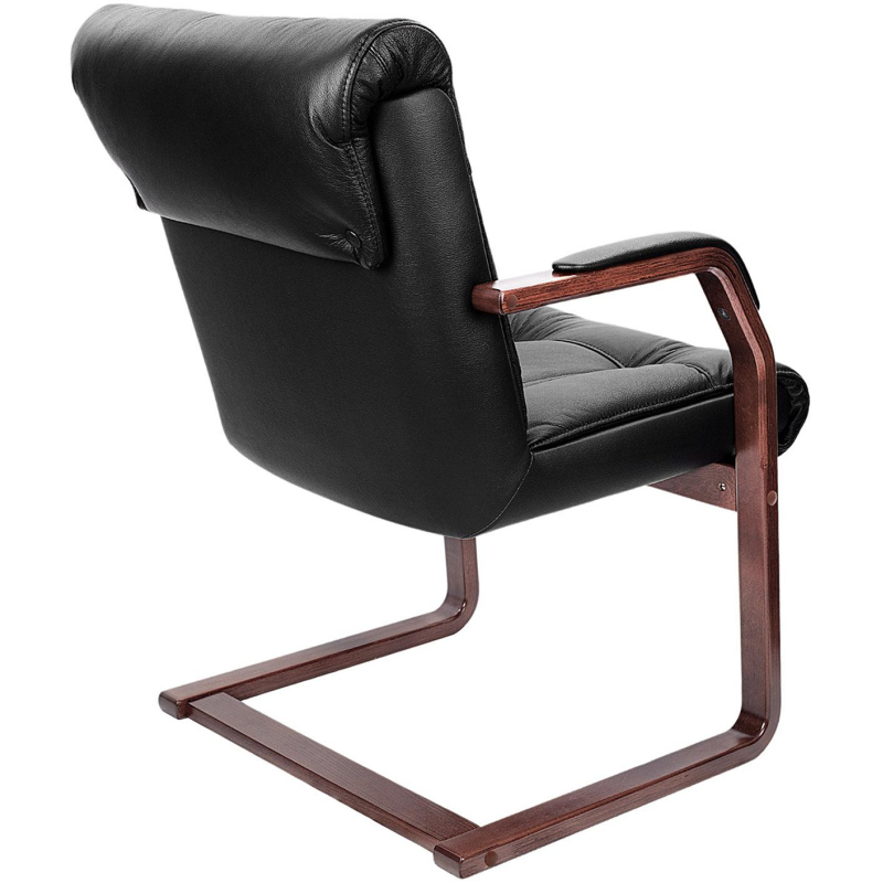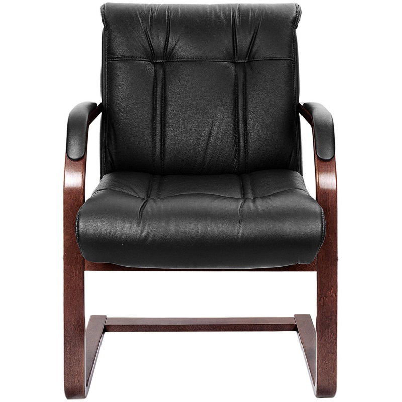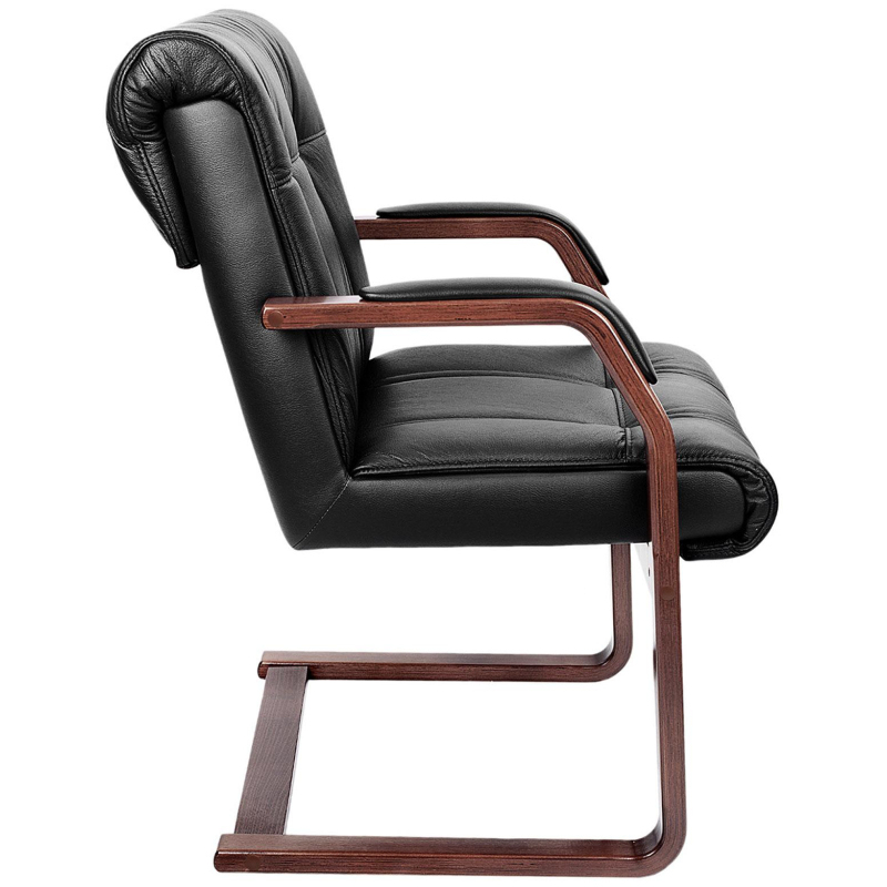 Конференц-кресло PARIS С с низкой спинкой на полозьях ч. кожа+к/з/т.орех