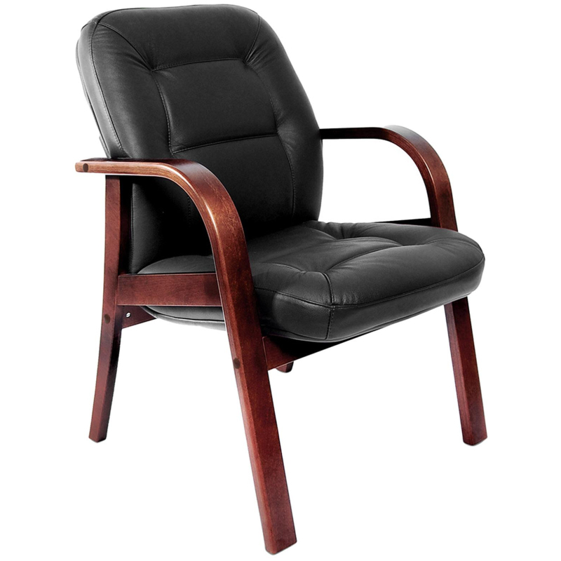 Конференц-кресло VICTORIA D с низ спинкой на каркасе ч.кожа+к/з/т.орех
