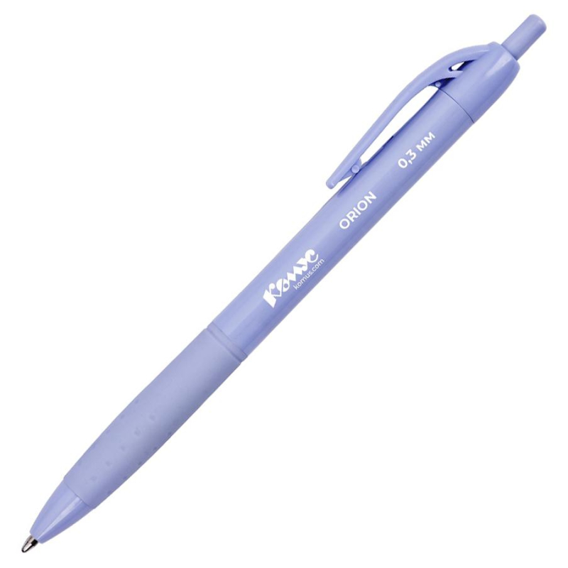 Ручка шариковая автоматическая Комус Orion - современный яркий дизайн и надежное качество! Модель выполнена в пластиковом корпусе сиреневого цвета. Стильный дизайн ручки дополняет пластиковый клип, позволяющий плотно закрепить ручку в кармане пиджака или тетради для записей. Прорезиненная манжетка придает ощущение комфорта при письме, способствует надежному захвату пальцев и препятствует выскальзыванию. Сменный стержень длиной 120 мм снабжен конусообразным наконечником, заправлен чернилами синего цвета. Диаметр пишущего узла 0,7 мм создает тонкую линию письма, равную 0,3 мм. Ручка обеспечивает легкое и мягкое письмо, яркие и насыщенные линии. Благодаря качественным материалам, используемым при изготовлении, эта ручка станет надежным помощником на долгое время. Сменные стержни к данной ручке временно не представлены в ассортименте.