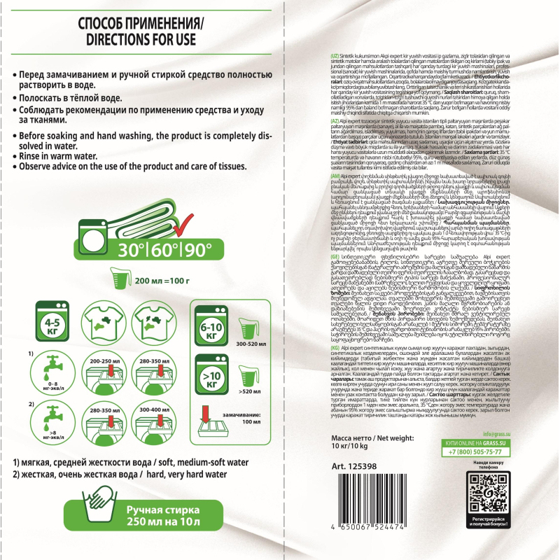 Порошок стиральный Alpi Expert для белого белья 10 кг. Назначение: средство моющее синтетическое порошкообразное Alpi expert предназначено для замачивания, стирки и отбеливания белого белья из хлопчатобумажных, льняных, синтетических тканей, а также тканей из смешанных волокон (кроме изделий из натурального шелка и шерсти) в стиральных машинах любого типа и для ручной стирки. Отбеливает и удаляет пятна любого происхождения. Способ применения: насыпьте необходимое количество порошка в соответствующее отделение стиральной машины перед началом стирки. Подробная информация о дозировке указана на упаковке. Состав: