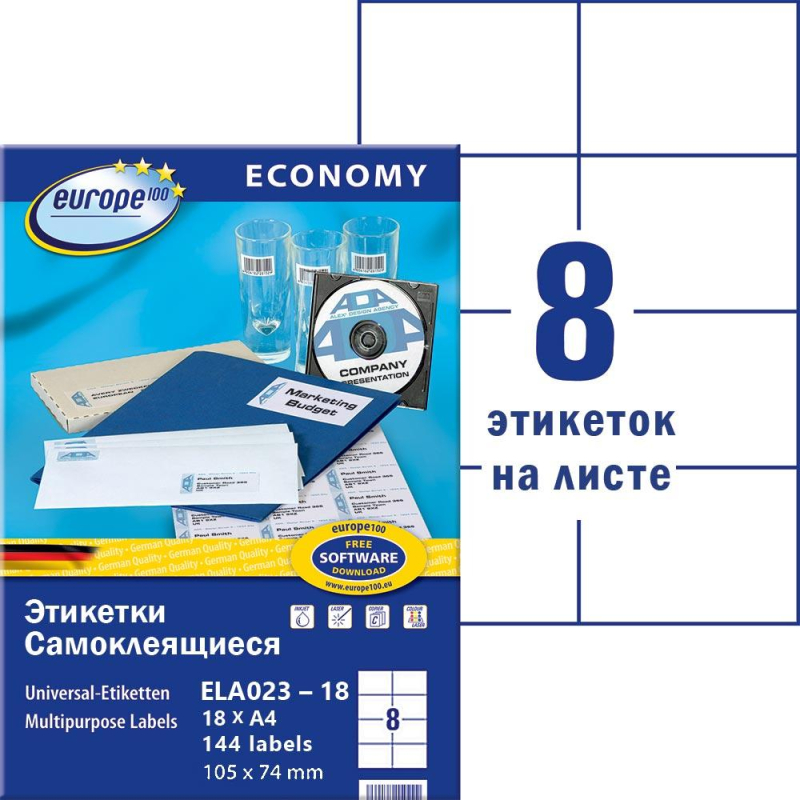 Универсальные этикетки "Европа-100" от Avery Zweckform гарантируют высокое качество исполнения: идеальное решение для любых задач стандартной маркировки. Универсальные самоклеящиеся этикетки Europe 100 производства Avery Zweckform изготовлены из бумаги белого цвета. Экономичная упаковка содержит 18 листов формата А4, на каждом листе - 8 этикеток размером 105x74 мм. - Отличная клейкость: приклеиваются на деревянные, бумажные, пластиковые, стеклянные поверхности. - Лучшее соотношение "цена - качество". - Бесперебойная печать принтера. - Технология QCT не допускает попадания клея в принтер. - Подходят для печати на лазерных, цветных лазерных принтерах и копировальных аппаратах. Для оформления и печати этикеток удобно использовать шаблон в формате Word. Для удобства работы с рисунками необходимо выделить вставленный в шаблон рисунок левой кнопкой мыши, открыть вкладку "Формат" и выбрать режим "Обтекание текстом - По контуру".