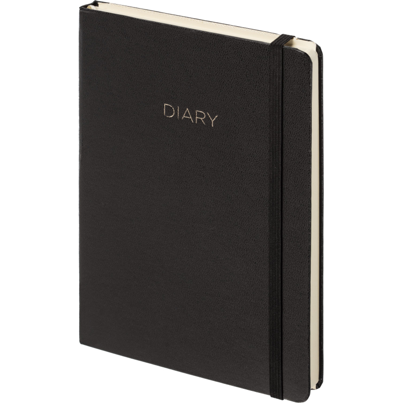 Ежедневник недатированный формата A5, размер изделия - 140x200 мм. Обложка черного цвета выполнена из искусственной кожи. Блок: недатированный, 136 листов (272 страницы) высококачественной белой бумаги (плотность 70 г/кв.м) в линейку, печать в 2 краски. Наличие ляссе. Тип крепления - сшивка. Содержит информационно-справочный блок. Ежедневник отлично подойдет для работы в офисе.