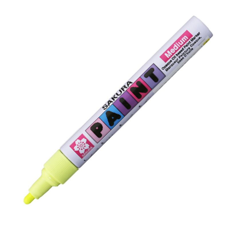 Маркер Sakura Paint с жидкими чернилами, флуоресцентный, желтый стержень, 2.0 мм, изготовлен на масляной основе и пигментах (содержит ксилол). Оставляет после нанесения четкое и прочное начертание на любой поверхности. Быстросохнущий, светостойкий, водостойкий, химически стойкий. Совмещение укрывистой способности краски и простоты маркера. Прочный алюминиевый корпус специально разработан для того, чтобы выдерживать постоянную нагрузку, идеально подходит для промышленного использования. Сцепление чернил с поверхностью зависит от типа поверхности, высокая адгезия с большинством поверхностей.