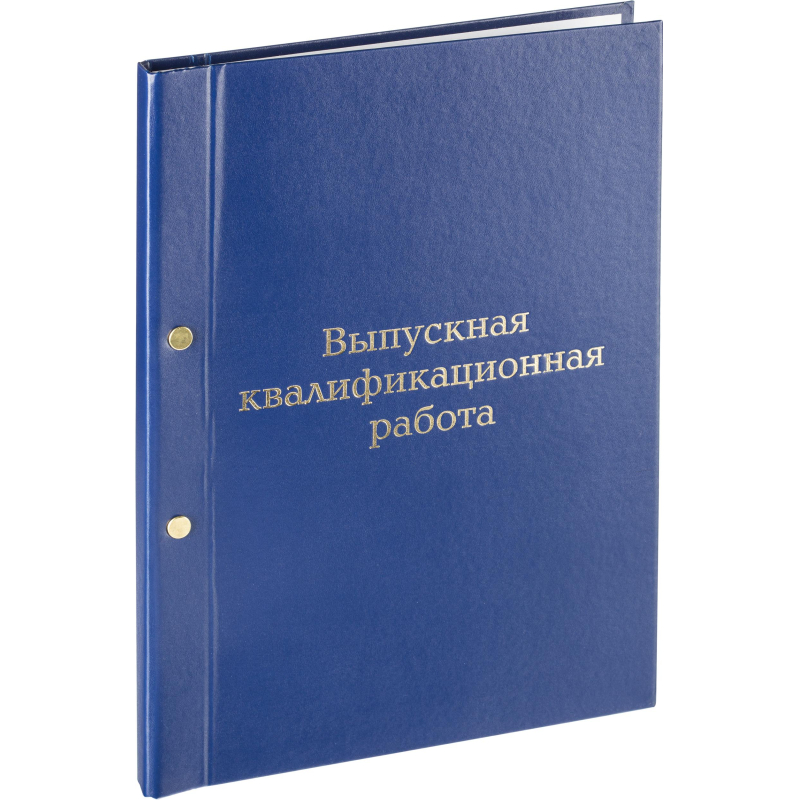 Папка выпускная квалифицированная работа выполнена из плотного переплетного картона 1,5 мм обтянутого бумвинилом снаружи и обклеенного внутри белой бумагой, сделаны два отверстия в корешке для крепления вложения болтами золотистого цвета. Тиснение на передней стороне паки сделано так же золотистого цвета. Упакована папка в ПП пакет. В коробе 10 штук.