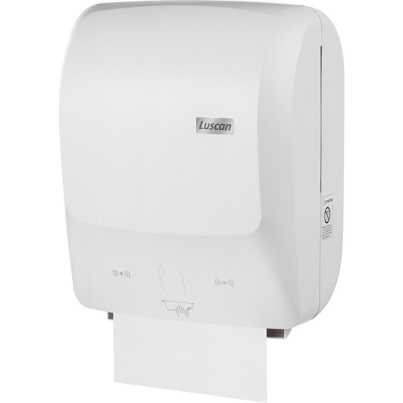Диспенсер для рулонных полотенец Luscan Professional Etalon сенсорный пластиковый белый (код производителя 1569737) Диспенсер для полотенец Luscan Professional отлично подходит для использования в местах с высокой проходимостью таких, как туалетные комнаты в ресторанах, офисах, торговых центрах, аэропортах, железнодорожных вокзалах и т.д. Бесконтактный забор полотенец обеспечивает высокий уровень гигиены, поскольку не нужно дотрагиваться до самого диспенсера. Большая вместимость диспенсера сокращает частоту перезаправок. Стильный и лаконичный дизайн диспенсера впишется в любой интерьер. Сенсор работает бесшумно, питание осуществляется от 4 батареек типа D. Обращаем ваше внимание, что батарейки не идут в комплекте. Цвет: белый. Диспенсерная система: Н12. Вид расходных материалов: рулонный. Вид крепления: настенное. Страна-изготовитель: Китай. Гарантийный срок: 1 год. Размер диспенсера (ВхШхГ): 396,7х306х225 мм. Материал: ABS-пластик, POM-пластик, PPS-пластик. Комплект поставки: диспенсер, ключ, саморезы для крепежа диспенсера.