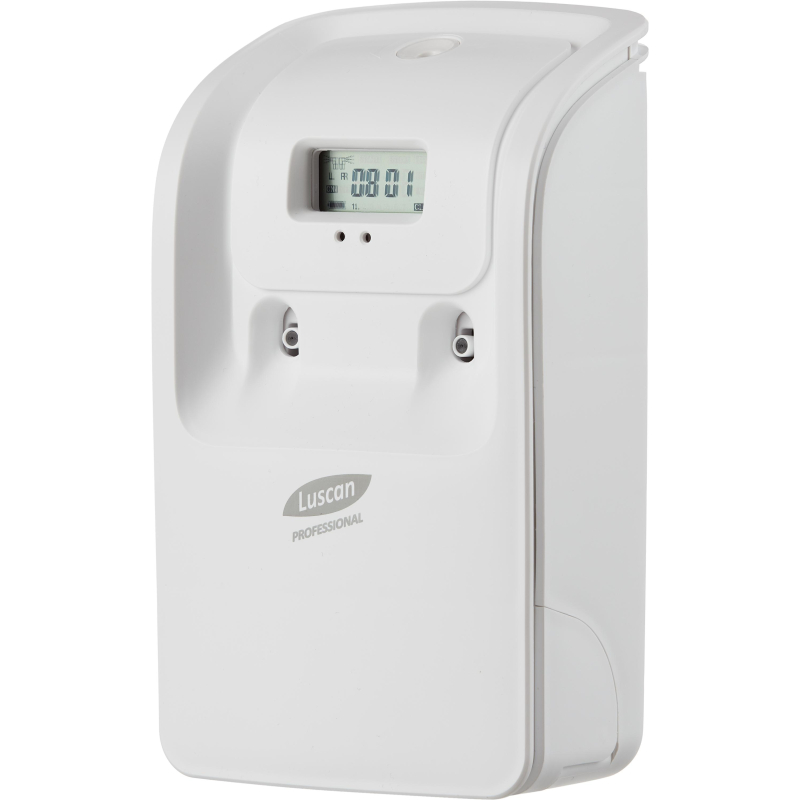 Диспенсер для освежителя воздуха автоматический Luscan Professional Etalon белый. Автоматический диспенсер для освежителя Luscan Professional предназначен для аэрозольных освежителей и подходит для всей линейки сменных баллонов Luscan. Диспенсер идеально впишется в любой интерьер туалетных комнат. В диспенсере можно одновременно использовать 1 или 2 сменных баллона, которые могут работать вместе или попеременно. Для работы диспенсера нужны 2 батарейки АА. Обращаем ваше внимание, что батарейки не идут в комплекте. Диспенсер рассчитан на 3200 распылений и единовременную ароматизацию помещения площадью до 120 м#. Автоматически выставляется интервал впрыска: 7, 5, 15 или 30 минут. Освежитель может работать как в круглосуточном режиме, так и в 12 - часовом режиме. Срок службы одного баллончика - 3 месяца. Размер диспенсера: 88,5х145,5х252,5 мм. Материал: ABS-пластик, полипропилен. Цвет: белый. Вид крепления: настенное. Страна-изготовитель: Китай. Гарантийный срок: 1 год.