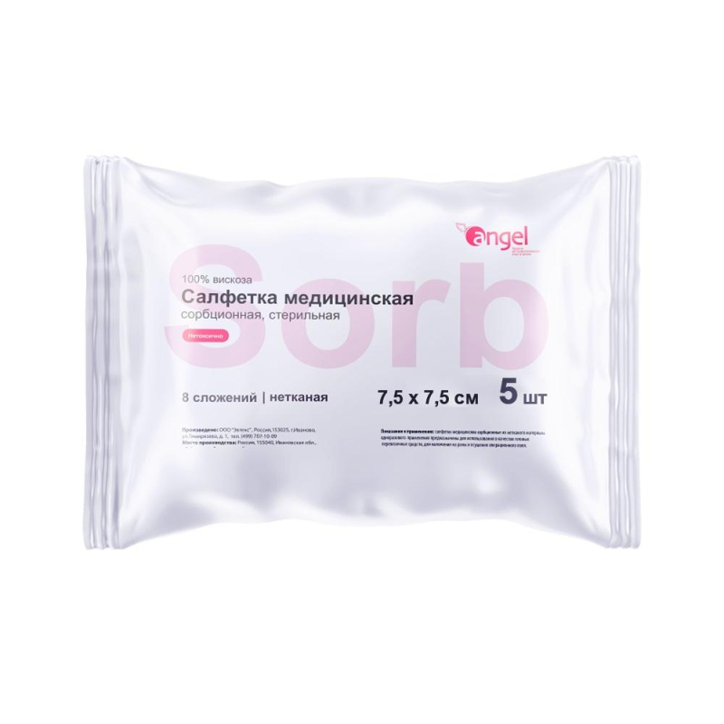 Перевяз. ср-ва Салфетки сорб. неткан. мед. стер. 7,5x7,5,5шт/уп,8 сл. Angel