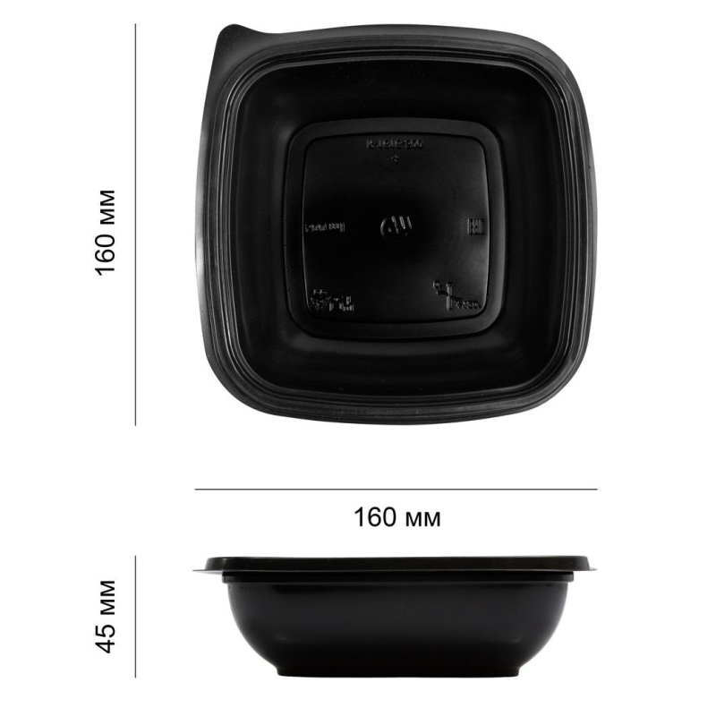 Одноразовый контейнер пластиковый 500 мл черный 160x160x45 мм ПП К-1616. Подходит для упаковки и доставки готовых блюд: гарниров, каш, салатов, вторых блюд, десертов, йогуртов. Контейнер имеет гладкую фактуру и текстуру, его приятно держать в руках. Контейнер подходит для холодных и горячих блюд от -60 до 70 градусов. Не рекомендуется повторно разогревать в СВЧ. Крышка к контейнеру приобретается отдельно. Товар прошел сертификацию и является полностью безопасным. Температура использования от -60 до +70