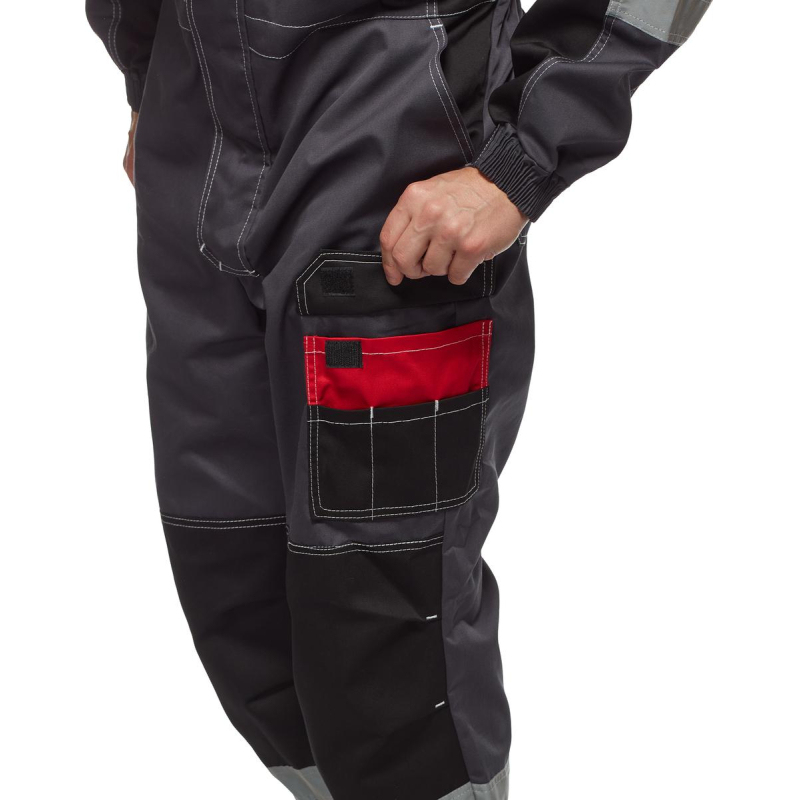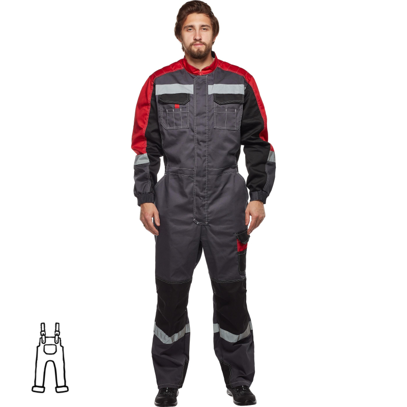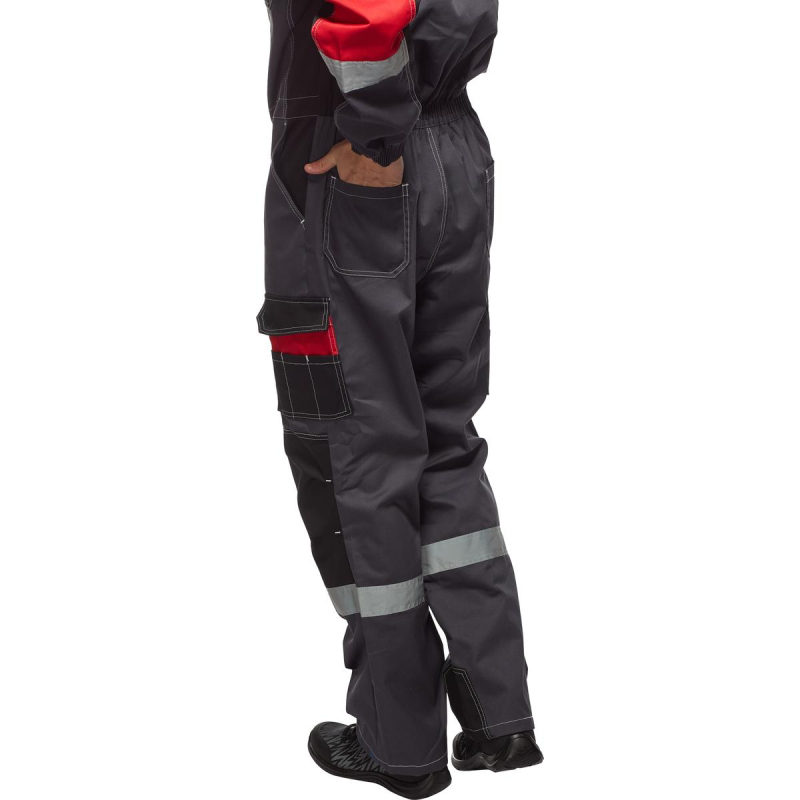 Комбинезон рабочий летний мужской. Размер: 56-58. Рост: 170-176. Состав ткани: 65% полиэстер, 35% хлопок. Плотность ткани: 240 +/- 10 г/кв.м. Застежка на молнию, закрытую ветрозащитной планкой на липучку. С фигурным воротником стойка. В области подмышечных впадин вентиляционные отверстия из сетки. Верхние накладные фигурные карманы с фигурными клапанами на липучку. Держатель полукольца для бейджа. С эластичной резинкой по талии спинки. Задними фигурными накладными карманами и карманами под инструменты. С накладным карманом и фигурным клапаном на липучку на боковом шве. Усилительными накладками в области коленей и по шаговому шву. В комбинезоне используется световозвращающая лента 50 мм. ЗАКОНОДАТЕЛЬНЫЕ И ТЕХНИЧЕСКИЕ ДОКУМЕНТЫ: