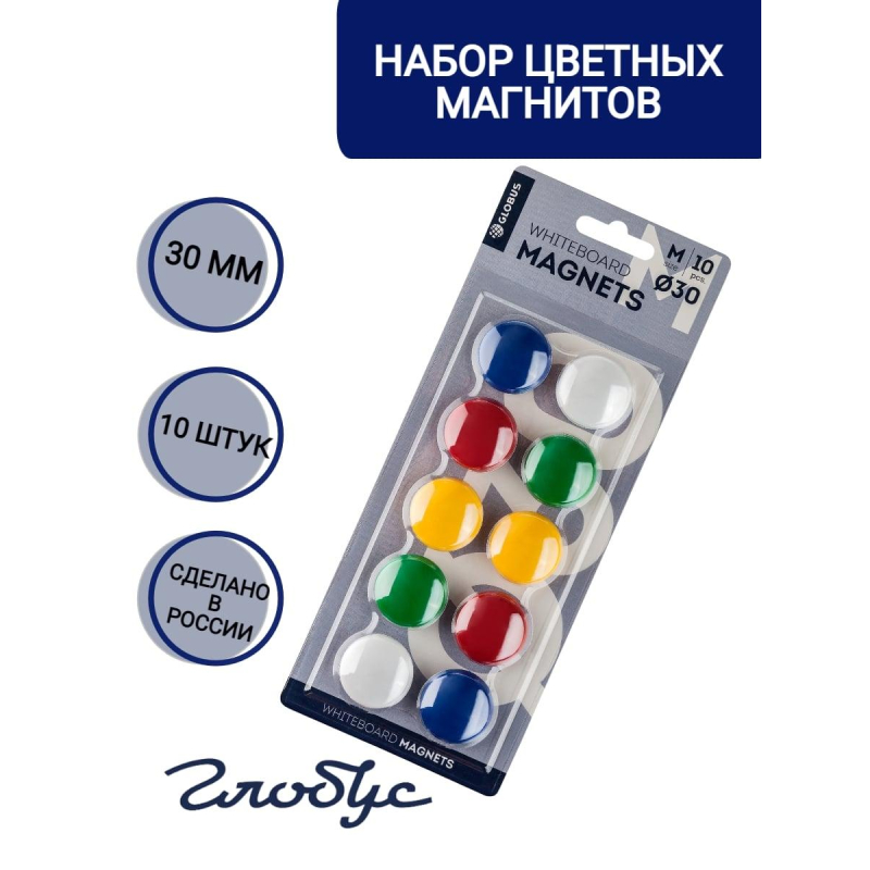 Магнитный держатель д.досок Глобус МЦ30-10,30 мм,ассорти,10 шт. в блистере