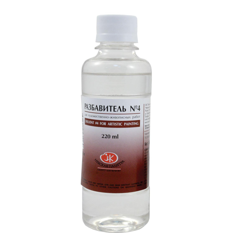 Состоит из пинена. Применяется для разведения художественных масляных красок и лаков. Может использоваться в ответственных художественных работах, так как не подвержен осмолению и желтению со временем. Введение в лессирующие краски "Разбавителя № 4" улучшает их оптические свойства. Температура транспортирования/хранения: не нормируется/от -40 до +40 °С.