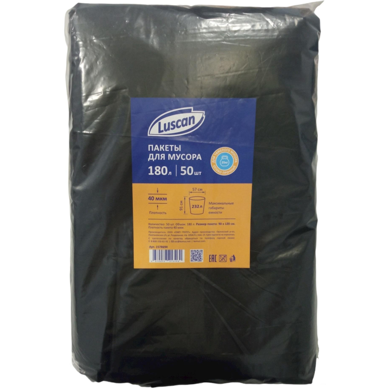 Мешки для мусора на 180 л Luscan черные (ПВД, 40 мкм, в упаковке 50 штук, 90x120 см) Подходят для тяжелого мусора, суперпрочные. Данные пакеты нашли широкое применение при переездах, вывозе мусора во время ремонта, дорожными службами и коммунальными хозяйствами, в производственных помещениях и государственных учреждениях. Изготовлены из полиэтилена высокого давления (ПВД), плотность 40 мкм, объем 180 литров. Упакованы по 50 пакетов в пласте. Цвет: черный. Размер (ШxД): 90x120 см.