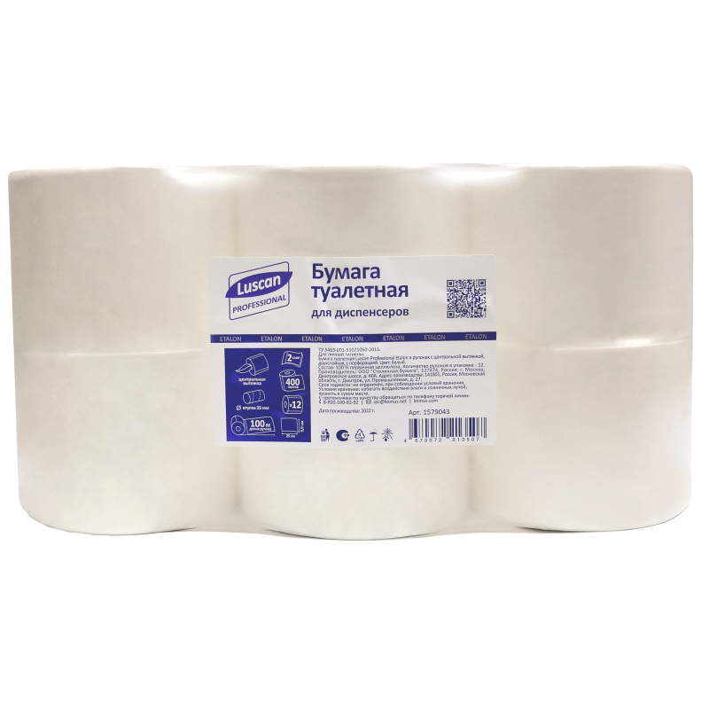 Бумага туалетная в рулонах Luscan Professional Etalon 2-слойная 12 рулонов по 100 метров (артикул производителя 1579043). Подходит для туалетных комнат со средней проходимостью, таких как ресторан, офис, и т. д. В каждом рулоне 400 листов размером 9.9x22 см. Рулон туалетной бумаги заменяет 5-6 стандартных рулонов туалетной бумаги. Мягкая впитывающая бумага, белого цвета изготовлена из первичной целлюлозы. Подходит к держателям диспенсерных систем Т6, Т9, Т4. Так же бумага подходит для использования со стандартным креплением. Необходимы оригинальные адаптеры для работы в диспенсерной системе Т6. Размеры: длина рулона 100 м, ширина рулона 9.9 см, диаметр рулона 13.2 см, диаметр втулки 3.5 см.