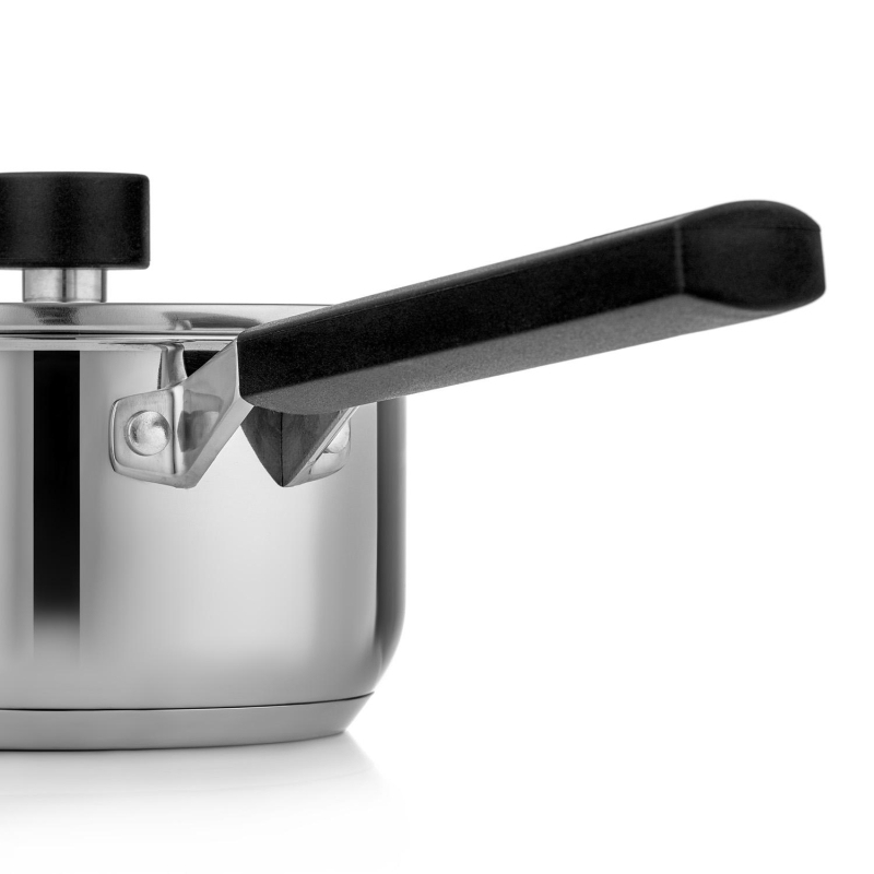 Ковш Esprado El Rey 1.7 л нержавеющая сталь с крышкой - классическая коллекция посуды для приготовления из высококачественной нержавеющей стали 18/10. Зеркальная полировка корпуса придает посуде приятный блеск. Силиконовые аксессуары черного цвета позволяют пользоваться изделием без прихваток. Трехслойное капсульное дно с прослойкой из алюминия гарантирует равномерный нагрев изделия по всей поверхности. Готовить с более точным соблюдением рецепта можно благодаря наличию шкалы литража внутри изделия. Крышка из прозрачного стекла с паровыпуском дает возможность наблюдать за процессом приготовления пищи. Посуду коллекции El Rey можно мыть в посудомоечной машине и использовать на всех типах плит, включая индукционные.