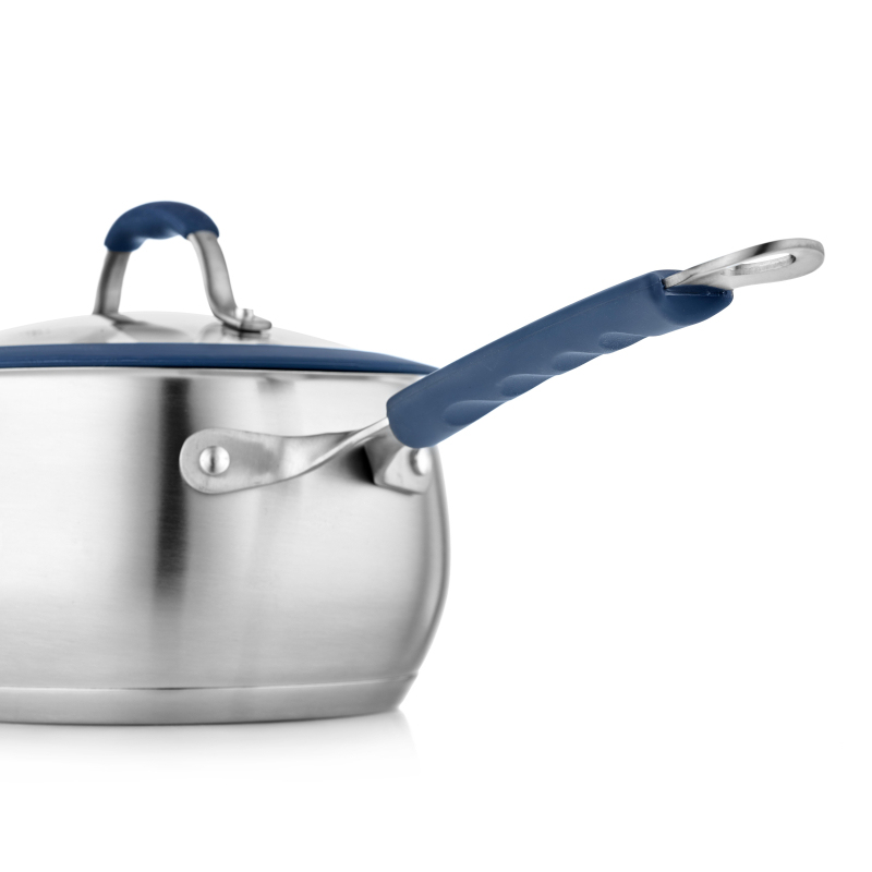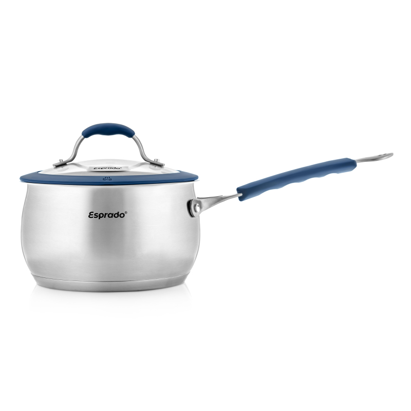 Ковш Esprado El Unico 2 л нержавеющая сталь с крышкой - коллекция посуды для приготовления из практичной и долговечной нержавеющей стали 18/10 для комфортного и безопасного использования. Готовить пищу легко благодаря трехслойному дну с алюминиевой прослойкой, которое быстро нагревается и равномерно распределяет тепло. Вы сможете использовать эту посуду без прихваток благодаря не нагревающимся силиконовым аксессуарам. Внутренние отметки литража помогут соблюдать рецепт без мерной емкости. Силиконовый обод сбережет крышку от сколов и не будет греметь при закипании. Округлая форма изделий в сочетании с аксессуарами приятного синего цвета придает посуде стильный внешний вид. Предметы коллекции подходят для использования на всех типах плит, в том числе индукционных. Можно мыть в посудомоечной машине при температуре от 50 до 65 градусов.