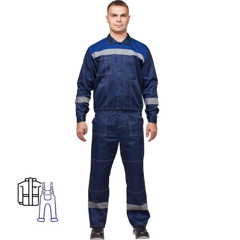 Костюм рабочий летний мужской л20-КПК состоит из куртки и полукомбинезона. Размер: 44-46. Рост: 170-176. Цвет: синий/васильковый. Изготовлен из смесовой ткани (65% полиэстер, 35% хлопок). Плотность ткани: 210 г/кв.м. Полукомбинезон c накладными карманами, гульфиком на пуговицах, эластичной тесьмой по талии спинки и регулируемыми бретелями. Куртка прямого силуэта c объемными накладными карманами и супатнoй застежкой на пуговицы. Куртка и полукомбинезон оснащены светоотражающей полосой. Сферы применения: сельское хозяйство, логистика, легкая промышленность, строительство, озеленение. ГОСТ 12.4.280-2014.