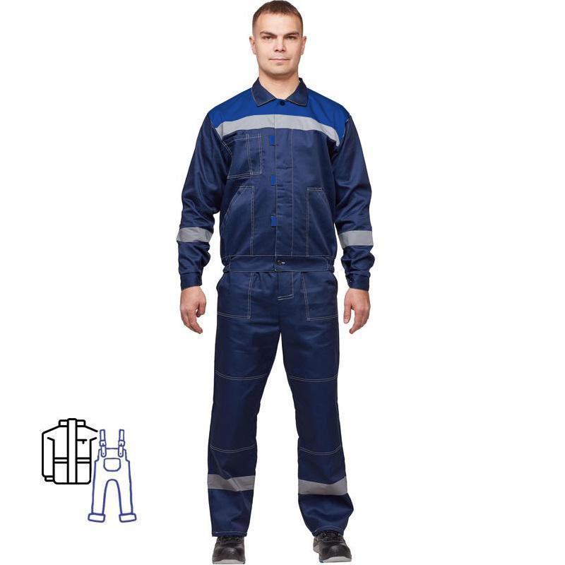 Костюм рабочий летний мужской л20-КПК состоит из куртки и полукомбинезона. Размер: 48-50. Рост: 182-188. Цвет: синий/васильковый. Изготовлен из смесовой ткани (65% полиэстер, 35% хлопок). Плотность ткани: 210 г/кв.м. Полукомбинезон c накладными карманами, гульфиком на пуговицах, эластичной тесьмой по талии спинки и регулируемыми бретелями. Куртка прямого силуэта c объемными накладными карманами и супатнoй застежкой на пуговицы. Куртка и полукомбинезон оснащены светоотражающей полосой. Сферы применения: сельское хозяйство, логистика, легкая промышленность, строительство, озеленение. ГОСТ 12.4.280-2014.