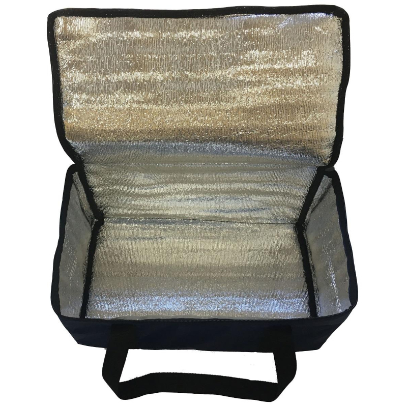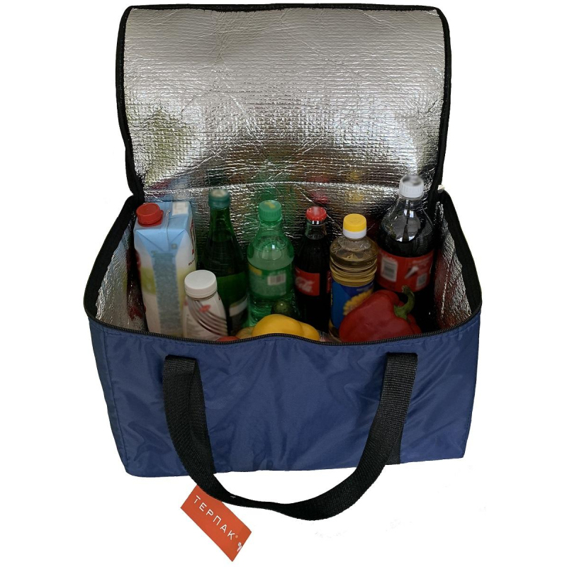 Термосумка универсальная нейлон синий 40x25x25 см прямоугольной формы имеет объем 25 литров. Застежка-молния. Термосумка имеет удобные ручки для переноски с надежным креплением в дно сумки. Изотермические свойства термосумки улучшаются с применением аккумуляторов холода. Она будет не менее эффективной, чем объемный ланч-бокс, и сохранит блюда свежими. Предназначена для хранения и транспортировки горячих и охлажденных продуктов.