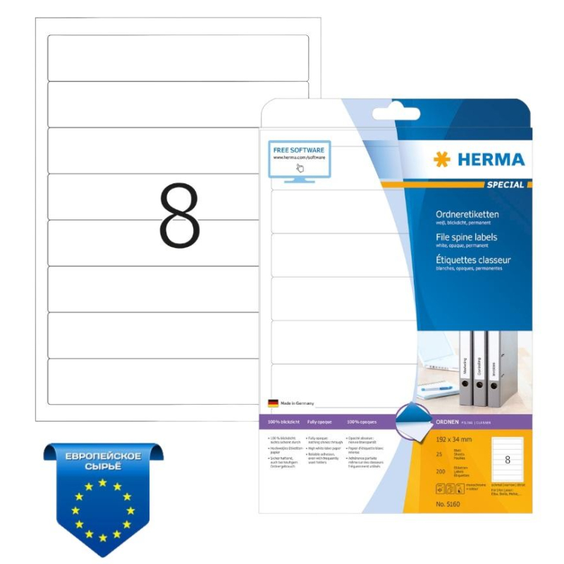 Этикетки самоклеящиеся бумажные производства ведущего мирового производителя немецкой фирмы Herma. Для различного применения на производстве, в офисе, дома, в школе, для приклеивания на папки-регистраторы. Этикетки с насечкой, для удобства в использовании, для печати на струйных, лазерных принтерах и для копировальных аппаратов. Выдерживают температурные колебания от -30 до + 80 градусов С. В упаковке 25 листов по 8 этикеток размером 192х34 мм на каждом. Уникальные края листа с этикетками предотвращают попадание мельчайших частиц клея на чувствительные детали аппаратуры. Этикетки совместимы со всеми видами принтеров, копировальных устройств и многофункциональных устройств в том числе, цветных принтеров и копиров. Вся продукция компании Herma сертифицирована по стандартам ISO, что означает стабильно высокое качество продукции плюс развитие экологической политики.