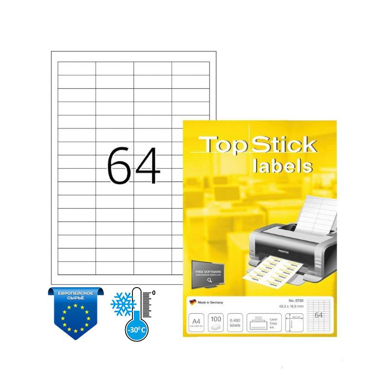 Этикетки самоклеящиеся бумажные производства ведущего мирового производителя немецкой фирмы Herma. Для различного применения на производстве, в офисе, дома, в школе. Этикетки с насечкой, для удобства в использовании, для печати на струйных, лазерных принтерах и для копировальных аппаратов. Выдерживают температурные колебания от -30 до + 80 градусов С. В упаковке 100 листов по 64 этикетки размером 48,3х16,9 мм на каждом. Уникальные края листа с этикетками предотвращают попадание мельчайших частиц клея на чувствительные детали аппаратуры. Этикетки совместимы со всеми видами принтеров, копировальных устройств и многофункциональных устройств в том числе, цветных принтеров и копиров. Вся продукция компании Herma сертифицирована по стандартам ISO, что означает стабильно высокое качество продукции плюс развитие экологической политики.