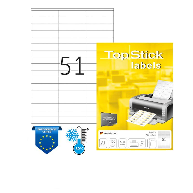 Этикетки самоклеящиеся бумажные производства ведущего мирового производителя немецкой фирмы Herma. Для различного применения на производстве, в офисе, дома, в школе. Этикетки с насечкой, для удобства в использовании, для печати на струйных, лазерных принтерах и для копировальных аппаратов. Выдерживают температурные колебания от -30 до 80 градусов С. В упаковке 100 листов по 51 этикетки размером 70х16.9 мм на каждом. Уникальные края листа с этикетками предотвращают попадание мельчайших частиц клея на чувствительные детали аппаратуры. Этикетки совместимы со всеми видами принтеров, копировальных устройств и многофункциональных устройств в том числе, цветных принтеров и копиров. Вся продукция компании Herma сертифицирована по стандартам ISO, что означает стабильно высокое качество продукции плюс развитие экологической политики.
