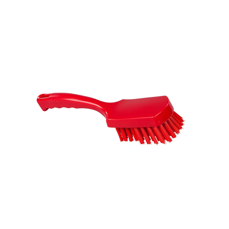 Щетка с короткой ручкой 275x70 мм жесткая для уборки сложных загрязнений с гладких поверхностей, оборудования, станков, столов, красный.