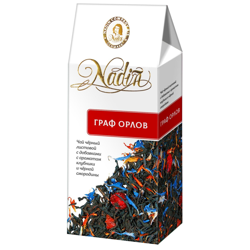Чай подарочный Nadin Граф Орлов листовой черный клубника и черная смородина 50 г. Черный листовой чай с добавлением лепестков сафлора и василька, ягод красной смородины и малины, с ароматом клубники и черной смородины. Состав: чай черный листовой, лепестки сафлора, ягоды красной смородины, лепестки василька, кусочки ягод малины, ароматизаторы. Способ приготовления: засыпьте одну чайную ложку чая на чашку, залейте свежевскипяченной водой и дайте настояться 5-7 минут. Приятного чаепития! Вес: 50 г. Тип упаковки: картонная пачка. Размер упаковки: 40х68х146 мм. Условия хранения: хранить в сухом месте при относительной влажности воздуха не более 70%. Страна производства: Россия.
