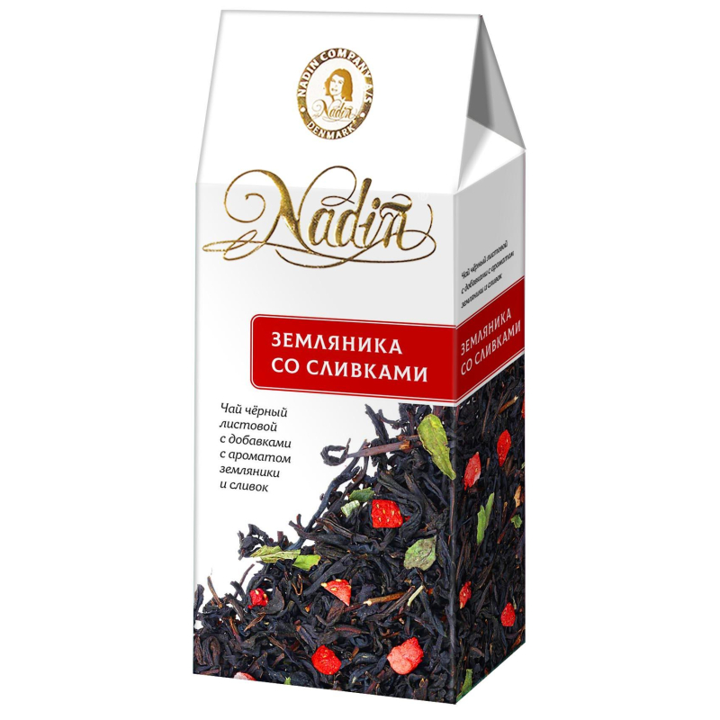 Чай подарочный Nadin листовой черный земляника со сливками 50 г. Чай черный листовой чай с добавлением листочков и ягод земляники, с ароматом земляники и сливок. Состав: Чай черный листовой, кусочки ягод и листочки земляники, ароматизаторы. Способ приготовления: засыпьте одну чайную ложку чая на чашку, залейте свежевскипяченной водой и дайте настояться 5-7 минут. Приятного чаепития! Вес: 50 г. Тип упаковки: картонная пачка. Размер упаковки: 40х68х146 мм. Условия хранения: хранить в сухом месте при относительной влажности воздуха не более 70%. Страна производства: Россия.