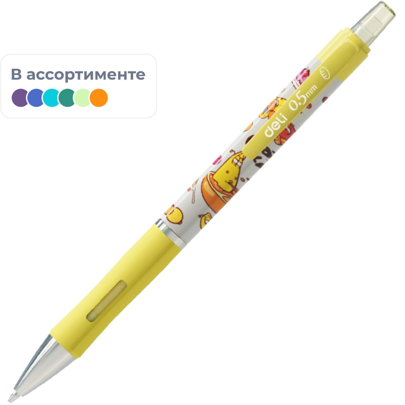 Механический карандаш Deli серии Larva с мягкой каучуковой подушечкой и ластиком обеспечивает легкое, мягкое и комфортное письмо. Идеально подходит для черчения. Качественная система подачи гарантирует точную и четкую подачу стержня. Прочная жесткая направляющая обеспечивает отличный результат при черчении по линейке или трафарету. Убирающийся наконечник карандаша обеспечивает безопасную транспортировку, карандаш не откроется даже в кармане. Эргономичный карандаш удобно лежит в руке и не вызывает дискомфорта даже при длительно использовании. Карандаш выполнен в 4-х тонах: желтом, голубом, розовом, оранжевом. Удобный клип позволяет фиксировать карандаш на ежедневниках, блокнотах и карманах одежды. Ластик без ПВХ, нетоксичен, белого цвета и безопасен для детей. Рекомендуется использовать с запасными стрежнями Deli. Корпус: пластик. Диаметр пишущего узла: 0.5 мм. Внимание! Товар поставляется в нескольких вариантах цвета/дизайна корпуса (без возможности выбора).