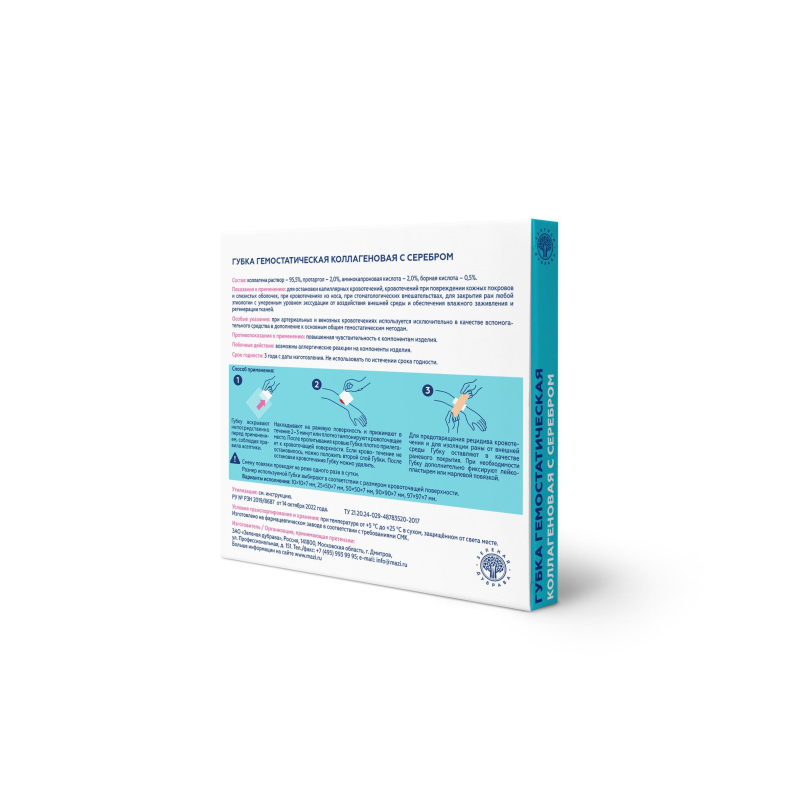 Пластина (Губка) гемостатическая коллагеновая с серебром 90х90х7