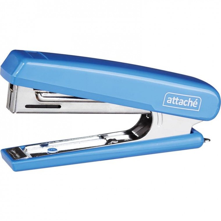 Степлер Attache 8209 одновременно сшивает до 12 листов плотностью 70 г/кв.м. Позволяет производить сшивание закрытым способом. Глубина закладки бумаги — 50 мм (5 см). Модель оснащена встроенным антистеплером. Корпус выполнен из пластика синего цвета. В степлере используются скобы № 10. Размер изделия: 110×48×27 мм. Вместимость скоб № 10 — 100 штук.