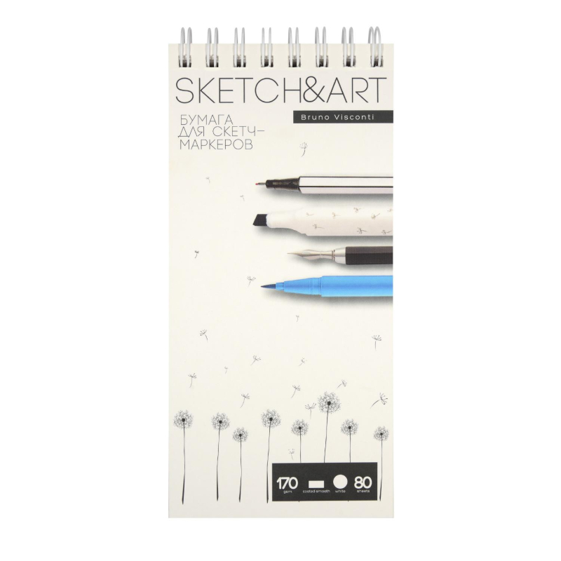 Часто те, кто только начинает учиться рисовать скетчи спиртовыми маркерами, используют офисную бумагу или обычные альбомы для рисования и очень расстраиваются, когда чернила проступают на обратную сторону листа, оставляют следы на других страницах. Для таких целей бумага должна быть плотной, как в скетчбуках серии Sketch&Art с плотностью 170 г/кв.м и двухсторонним мелованным покрытием. Двукратное мелованное покрытие с одной стороны листа увеличивает яркость и контрастность цвета и уменьшает расход чернил. Благодаря гладкой поверхности время высыхания маркеров увеличивается, что дает большой простор для создания градиентов и сложных переходов. Маркер легко скользит по поверхности листа, рисовать - одно удовольствие! 80 листов превосходного качества скреплены гребнем, что дает возможность переворачивать их на 180 градусов. Удобный формат позволяет иметь скетчбук всегда под рукой, а жесткая подложка делать зарисовки и наброски на весу. Скетчбук приятно держать в руках благодаря бархатистому покрытию Soft Tоuch, а лаконичный, но узнаваемый дизайн серии привлекает к себе внимание.
