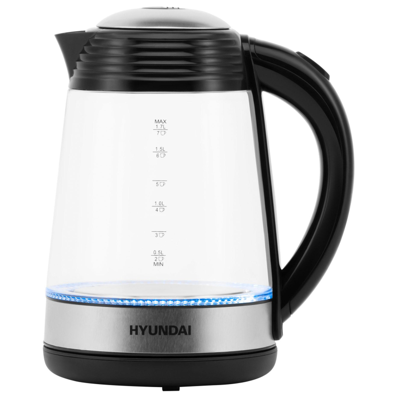 Чайник электрический Hyundai HYK-G3803 черный в элегантном дизайне станет достойным дополнением вашего интерьера. Высокая мощность в 2200 Вт и скрытый нагревательный элемент позволяют быстро вскипятить воду, а приятная светодиодная голубая подсветка делает этот процесс эффектнее. Корпус выполнен из боросиликатного стекла. Легкий и прчный материал не темнеет и не окрашивается со временем. Чайник косплектуется подставкой, вращающейся на 360 градусов, что означает, что чайником с одинаковым комфортом могут пользоваться как правши, так и левши. Важная особенность Hyundai HYK-G3803 - автоматическое отключение без воды, данная функция защищает чайник от случайного включения.
