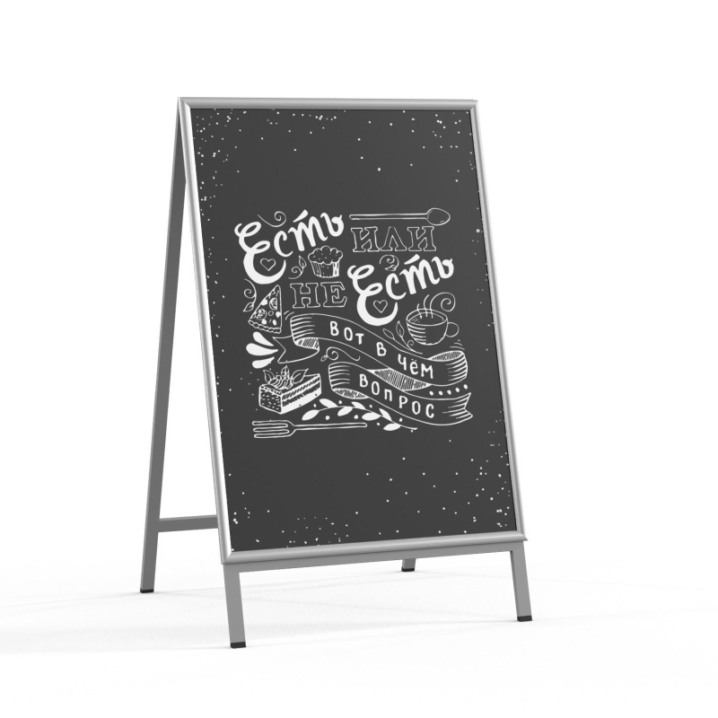 Штендер уличный с клик-рамкой формата А1 односторонний. Благодаря системе защелкивания клик-рамки гарантируем простоту и легкость замены рекламного плаката. Инструкция по применению клик-рамки: - аккуратно отогните пальцами декоративные крышки и отведите их в сторону. - достаньте или поместите в рамку информационный носитель; - защелкните крышки. Меняйте акцию, рекламное предложение сколько нужно. Штендер односторонний, доступен в формате А1 (840x600 мм). Отличное наружное решение для продвижения и привлечения гостей в кафе или ресторан, в станцию автозаправки и магазин. С помощью штендера уличного с меловым полем вы можете полностью обновить и витрину, и прилавок торговой точки в едином стиле. Надпись или рисунок легко стереть и мгновенно нанести новый.