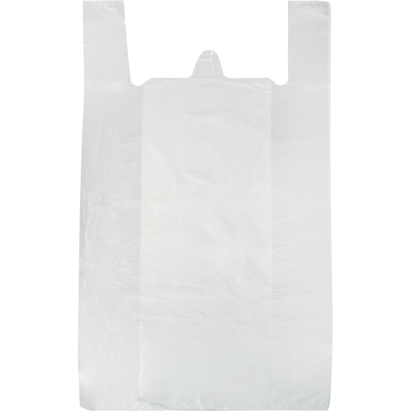Пакет-майка ПНД 15 мкм белый (42+20х75 см, 100 штук в упаковке). Фасовочные пакеты изготовлены из полиэтилен низкого давления (ПНД). Пакеты имеют плотность 15 мкм. Длина пакета - 75 см, ширина - 42 см. Количество в упаковке: 100 штук. Сфера применения: для повседневного использования, на складах и в торговых залах самообслуживания, на кассах в небольших магазинах, аптеках.
