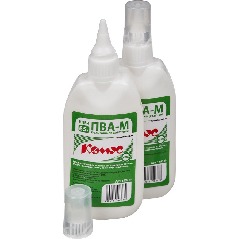 Клей ПВА Комус предназначен для склеивания бумаги, картона, фото, дерева, кожи, ткани, пробки. Отлично подходит для хобби и творчества для взрослых и детей. Пластиковый дозатор обеспечивает точное нанесение и экономный расход. Имеется съемный колпачок, который предохраняет клей от засыхания. Объем клея 85 г (80 мл). Клей ПВА при минусовых температурах замерзает, т.к. сделан на основе воды, но при оттаивании не теряет своих свойств. Его можно заморозить и размораживать 5 раз при температуре до -25°С, и он не потеряет ни своих свойств, ни товарного вида. Температура воздуха при использовании не ниже +5. Необходимо взболтать перед применением.