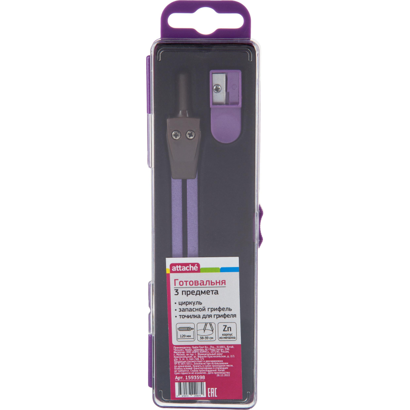 Готовальня Attache BF-A6 3пр/наб,циркуль 129мм,фиолет,пласт.пенал,европодв