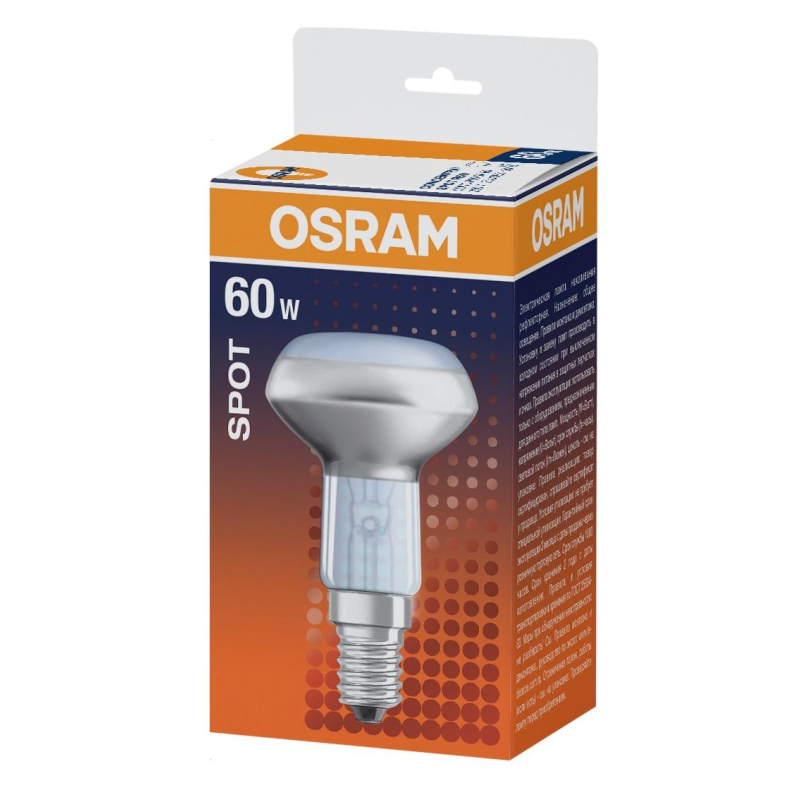 Лампа накаливания направленного света OsramConcentra Spot R50, 60 Вт, цоколь Е14. Лицензиатом торговой марки Osram в общем освещении является компания Ledvance. Стеклянная колба. Подходит для акцентного освещения.