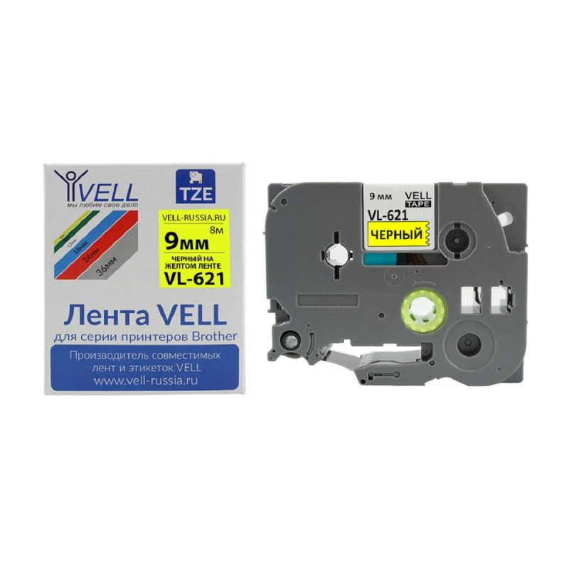 Картридж Vell VL-621 (Brother TZE-621, 9 мм, чер на желтом) для PT {Vell621